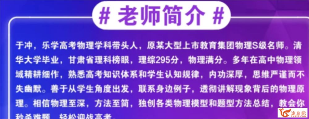 于冲,乐学高考物理学科带头人,原某大型上市教育集团物理S级名师