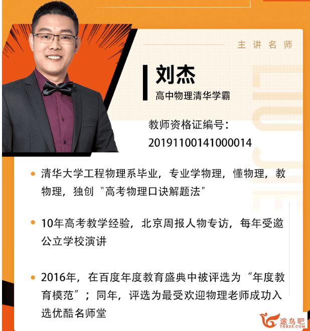2015年在线教育网络知名物理老师/以题分迅速讲解深入浅出为特点;