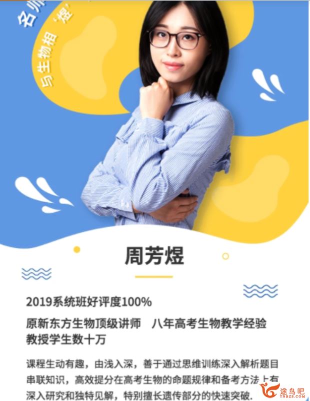 八年高考生物教学经验,教授学生数十万。课程生动有趣,由浅入深,善于通过思维训练深入解析题目,
