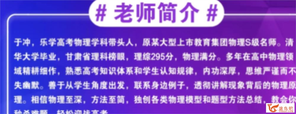 于冲,乐学高考物理学科带头人,原某大型上市教育集团物理S级名师