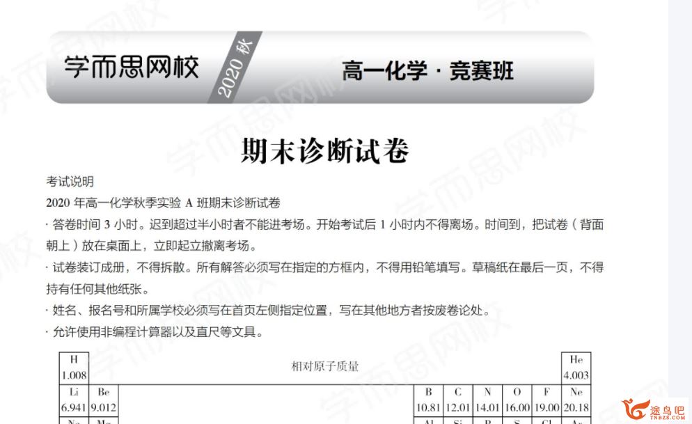 [高中化学]朱辉宇 2020秋 高一化学竞赛秋季直播班 目标省一 16讲完结带讲义百度网盘下载