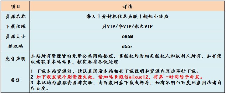 每天十分钟抓住龙头股丨超短小纯杰(完结)
