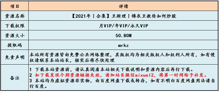 【2021年丨合集】卫斯理丨锦衣卫教你如何炒股教程,百度网盘资源打包下载