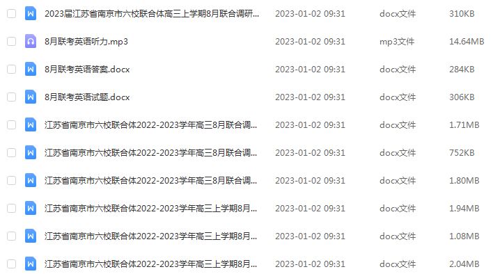 2023江苏省南京市六校联合体高三上学期8月联合调研考试