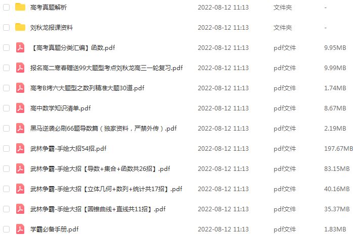 课程内容:[刘秋龙]高三数学a+视频教程+讲义(暑假班+秋季班)