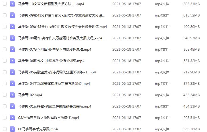 2021【马步野】高中语文教程全年班,26.41G课程百度网盘资源打包下载