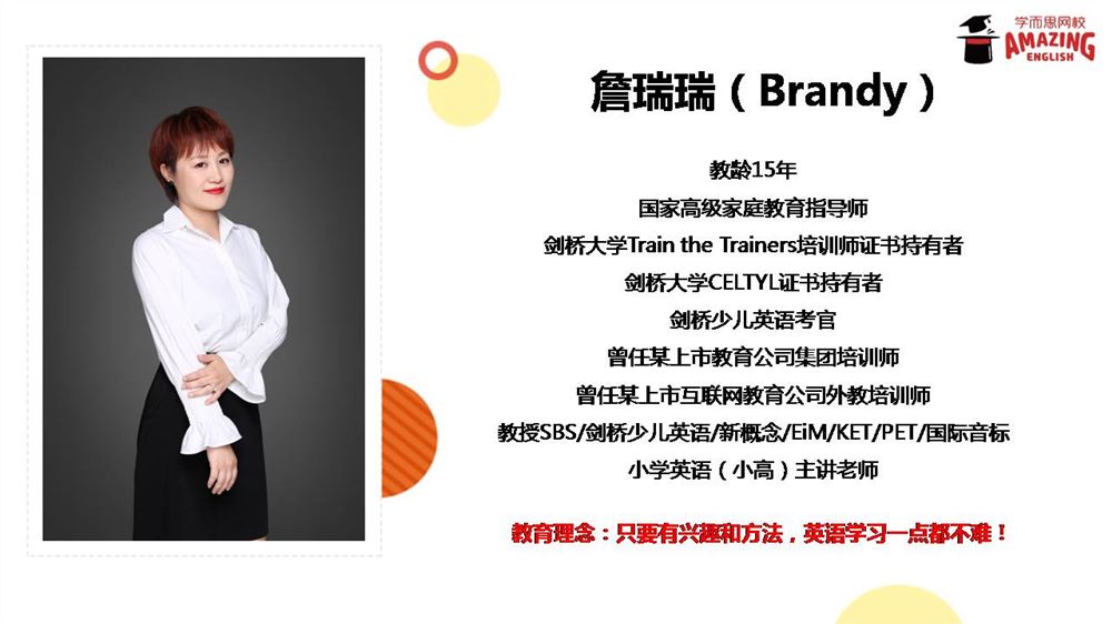 泡泡少儿教育集团教学培训师;家庭教育指导师;剑桥少儿英语等级考试考官;