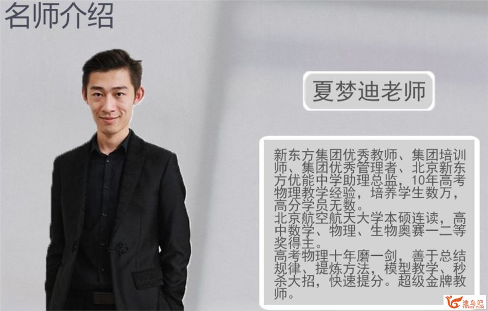 题型归类缜密方法论完善。但更试图以超前的思想方法和思维方式的传递在根本意义上改变学生对物理这门学科的理解和认识,以对受众应试能力与思维、思想能力的培养作为课程设计的最高目标与宗旨。