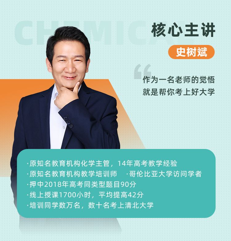跟谁学高中化学**讲师,高考化学押题名师,14年教学经验,所带学生平均提分30分!
