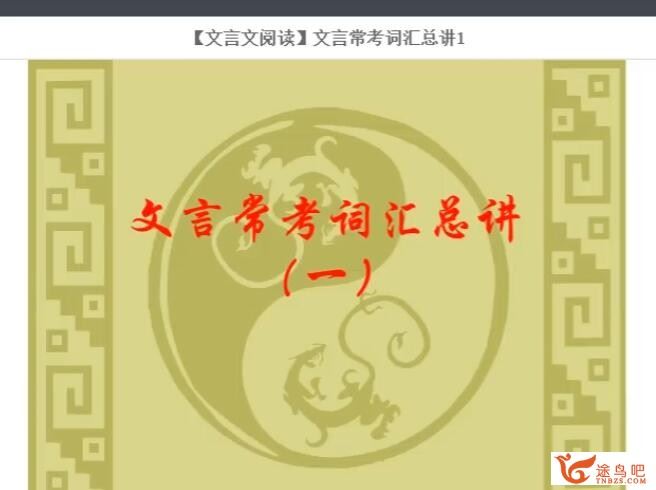[初中语文]猿辅导初中语文文言文常考词汇总讲基础知识大全用法积累 11讲百度网盘下载 简介: 文言文是中国古代的一种汉语书面语言组成的文章, “五四运动”以前汉民族所使用的语言。 主...
