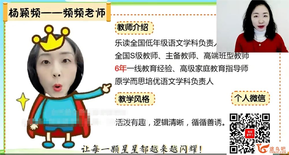 [小学语文]2023春学而思乐读1-6年级小学语文校内开学热身课30讲完整版 百度网盘下载 老师介绍: 杨颖频频频老师 乐读全国低年级语文学科负责,全国S级教师、主备教师、高端班型教师6年...