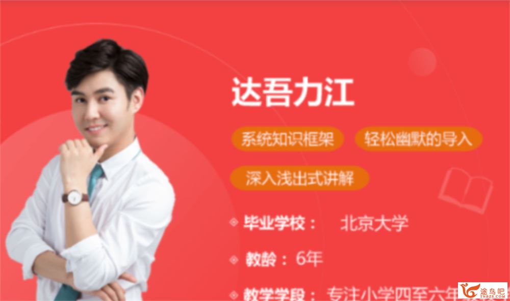 [小学语文]达吾力江 2020暑 五年级大语文直播班10讲完结带讲义 名师简介: 2013年11月至今,学而思网校小学高年级语文教师 2011年,巨人学校小学高年级语文教师 2014年3月参与中央电视...