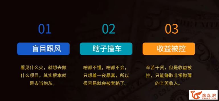 简介: 快速逆袭赚钱术 目录: 快速逆袭赚钱术,商业思维培养方法,让你变成赚钱高手 0001第01课-如何在网上赚钱?90%的人都没搞懂本质.mp4 0002第02课-作为网络掘金者,必懂的一...